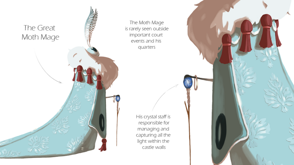 Hidden away in a medieval castle are a race of moths that hoard the light and the magic that comes with it. Denkin is an inexperienced and clumsy butterfly seeking to become apprentice to the pragmatic Moth Mage.